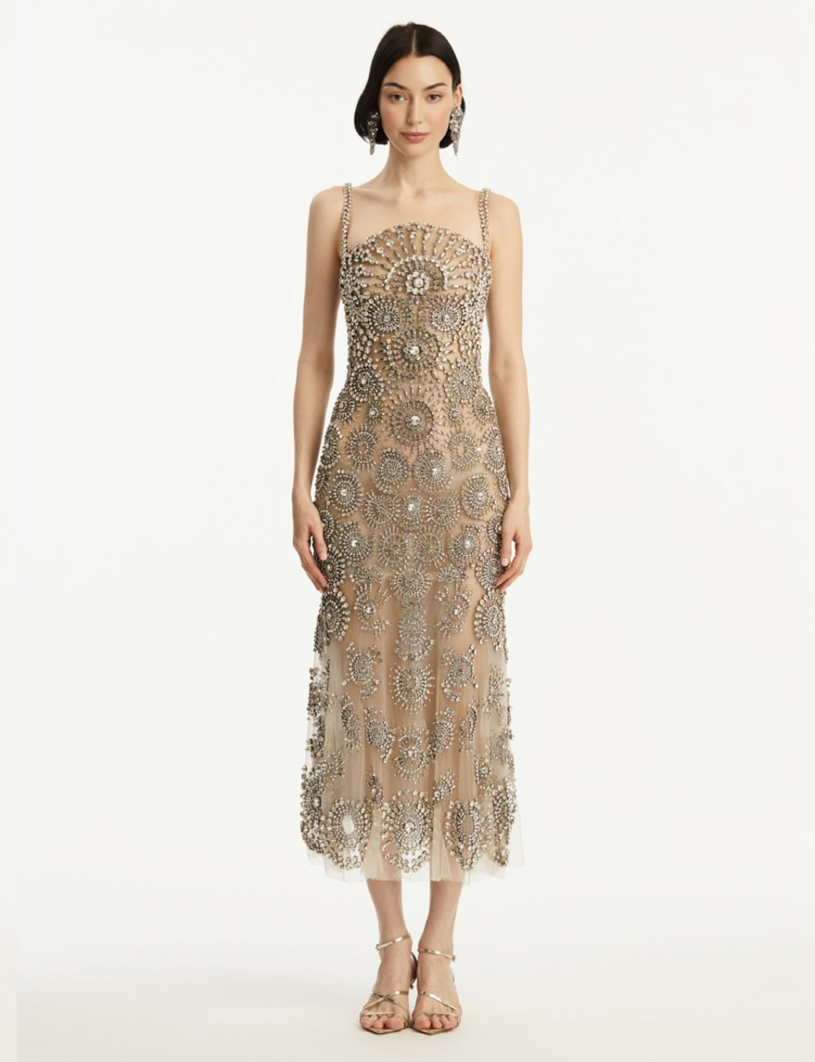 Opt for a midi or long dress, well-tailored, in a fluid or slightly structured fabric such as satin, crepe, or chiffon.
